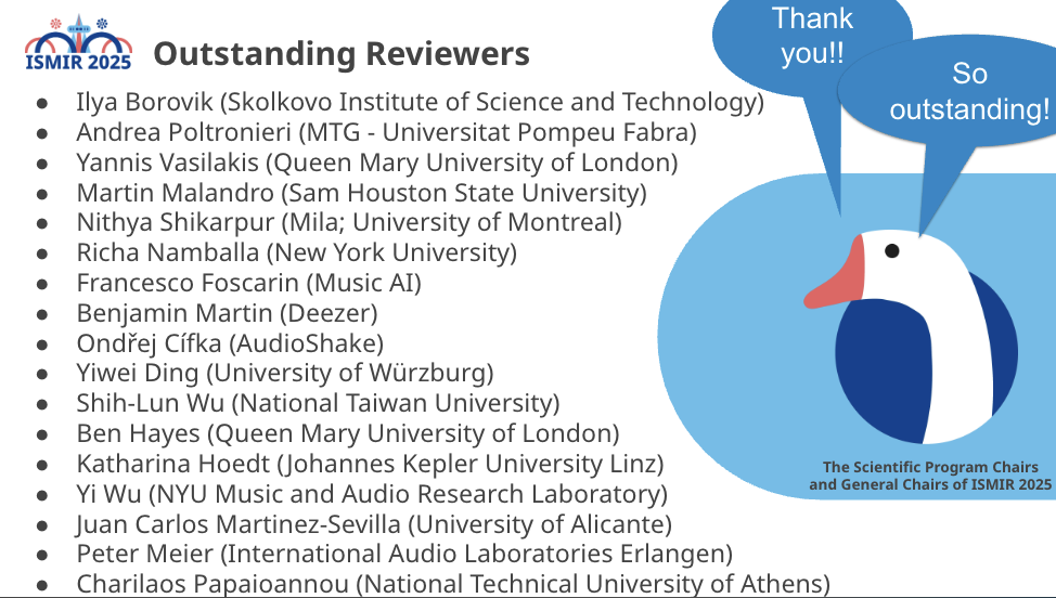 Topics included evolutionary algorithms for sound exploration, synthesizer sound matching, timbre transfer, timbre-based control, reinforcement learning, differentiable digital signal processing, representation learning, and human-machine co-creativity.